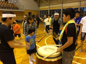 その後は太鼓を体験してもらいました。みんな太鼓が大好きです。 |